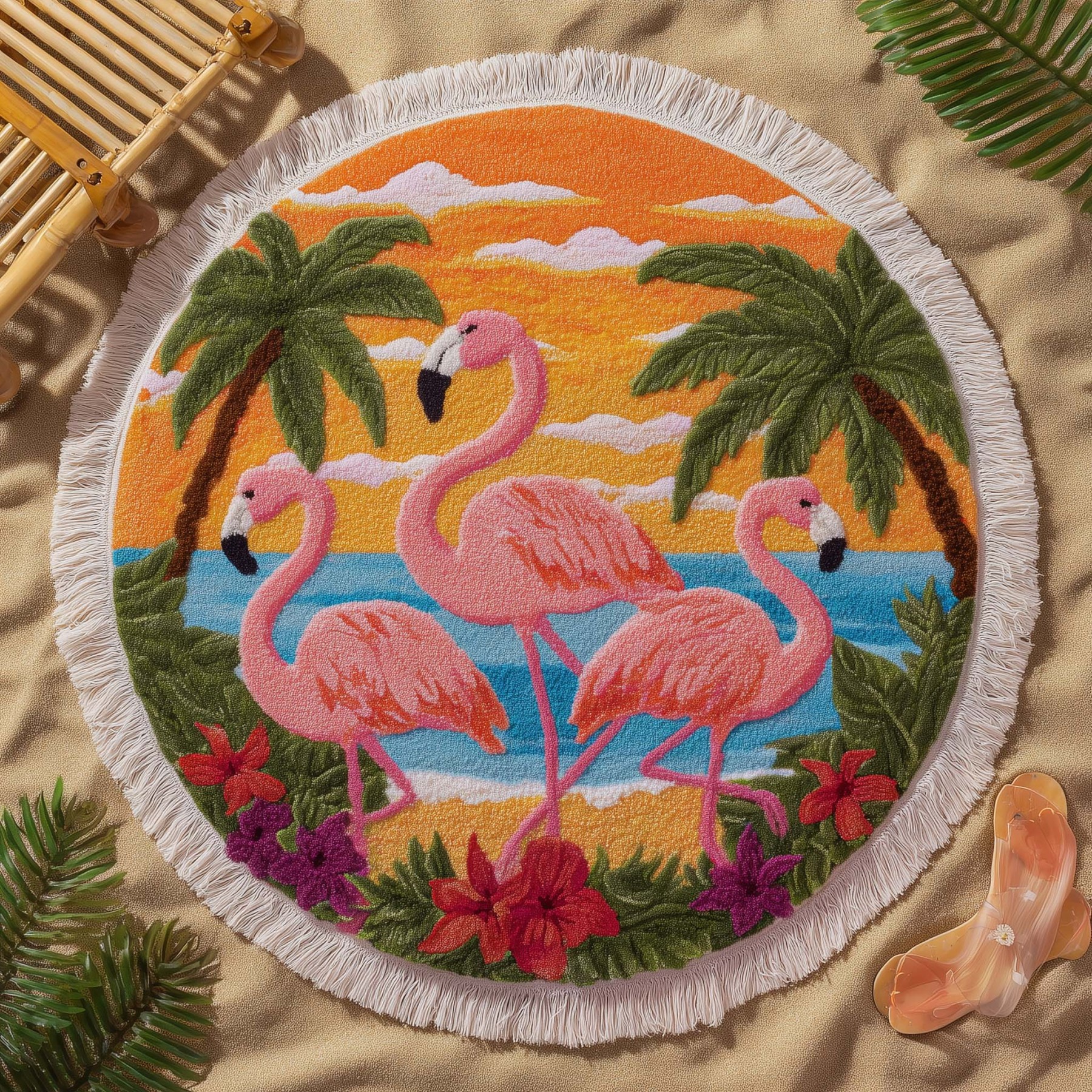 Sunset Flamingo Trio Round Beach Towel GFTOHD13438